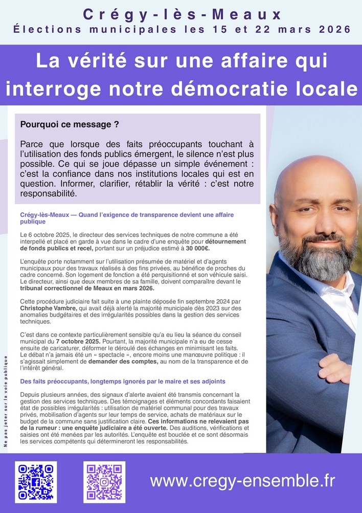 Parce que lorsque des faits préoccupants touchant à l’utilisation des fonds publics émergent, le silence n’est plus possible. Ce qui se joue dépasse un simple événement : c’est la confiance dans nos institutions locales qui est en question. Informer, clarifier, rétablir la vérité : c’est notre responsabilité.