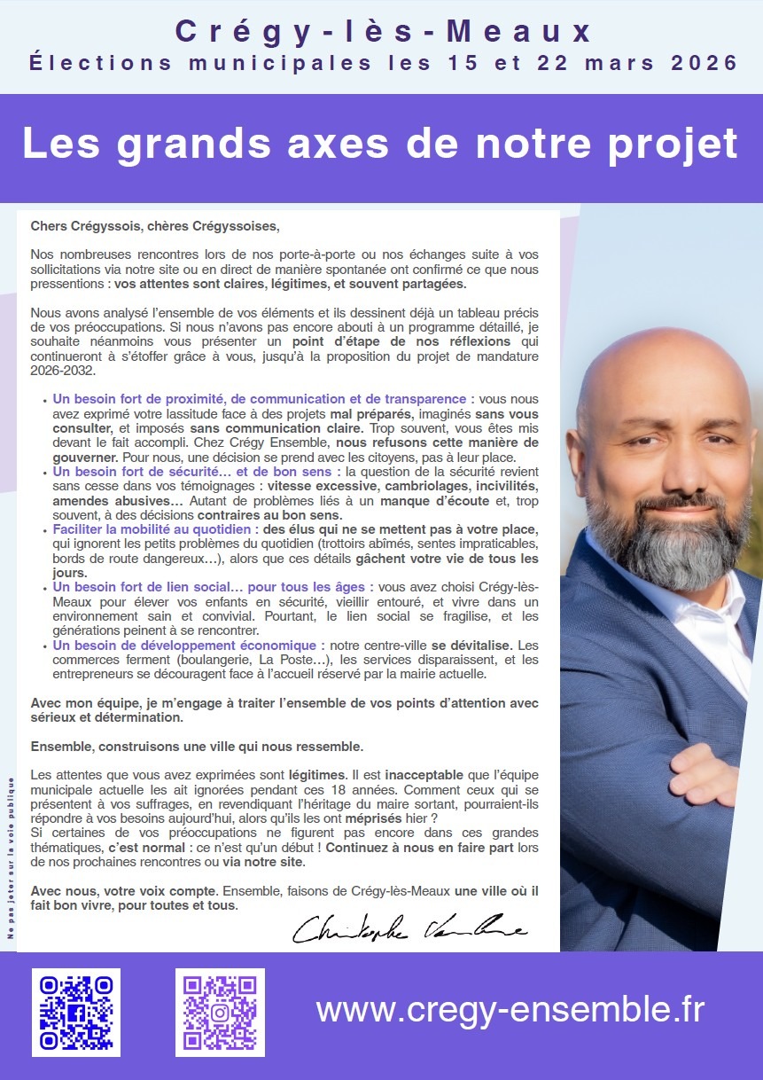continueront à s’étoffer grâce à vous, jusqu’à la proposition du projet de mandature 2026-2032.