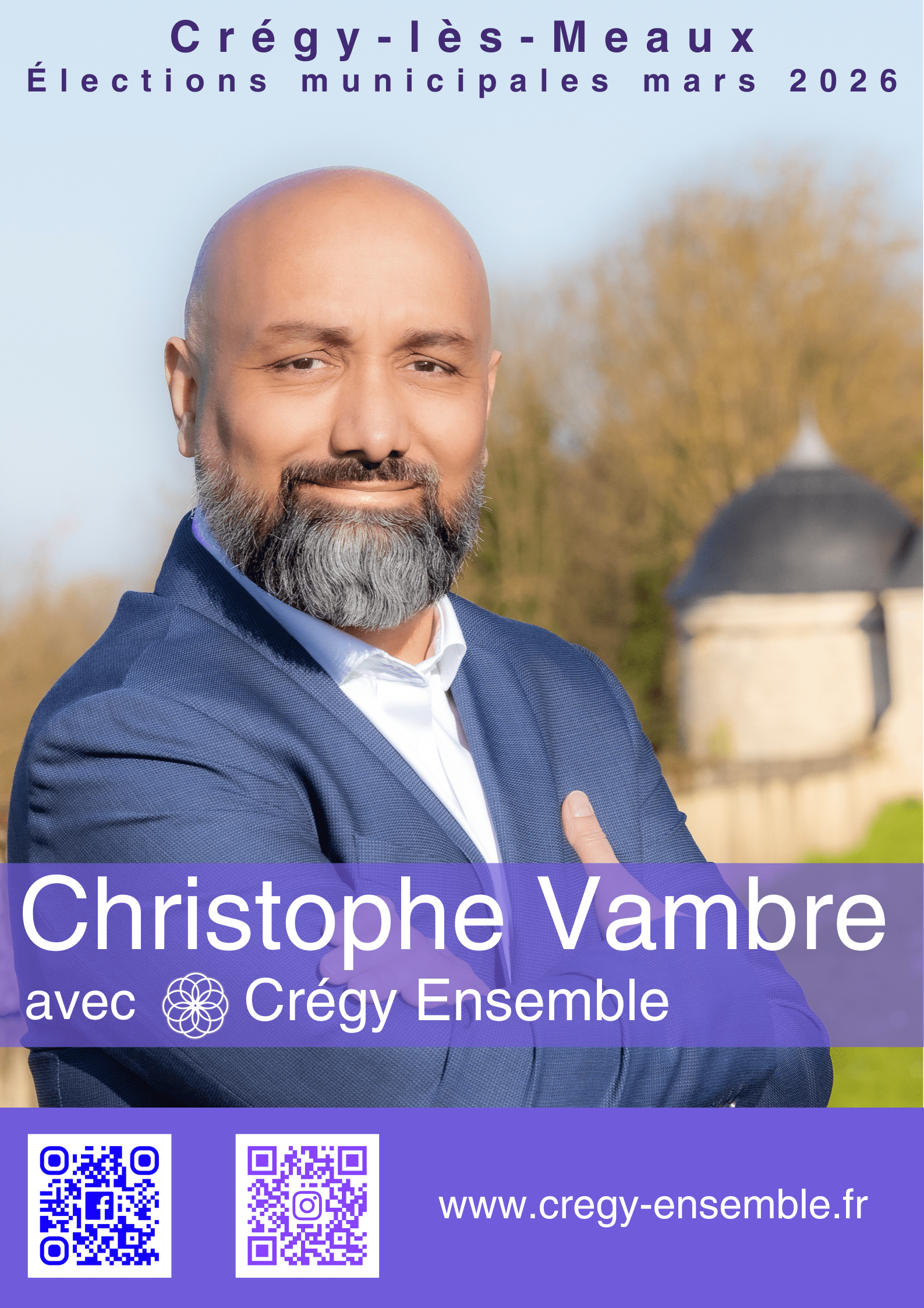 Je vous invite à avancer ensemble, à faire de Crégy-lès-Meaux un lieu où il fait bon vivre pour nos jeunes, nos familles, et toutes celles et ceux qui veulent bâtir un avenir meilleur.